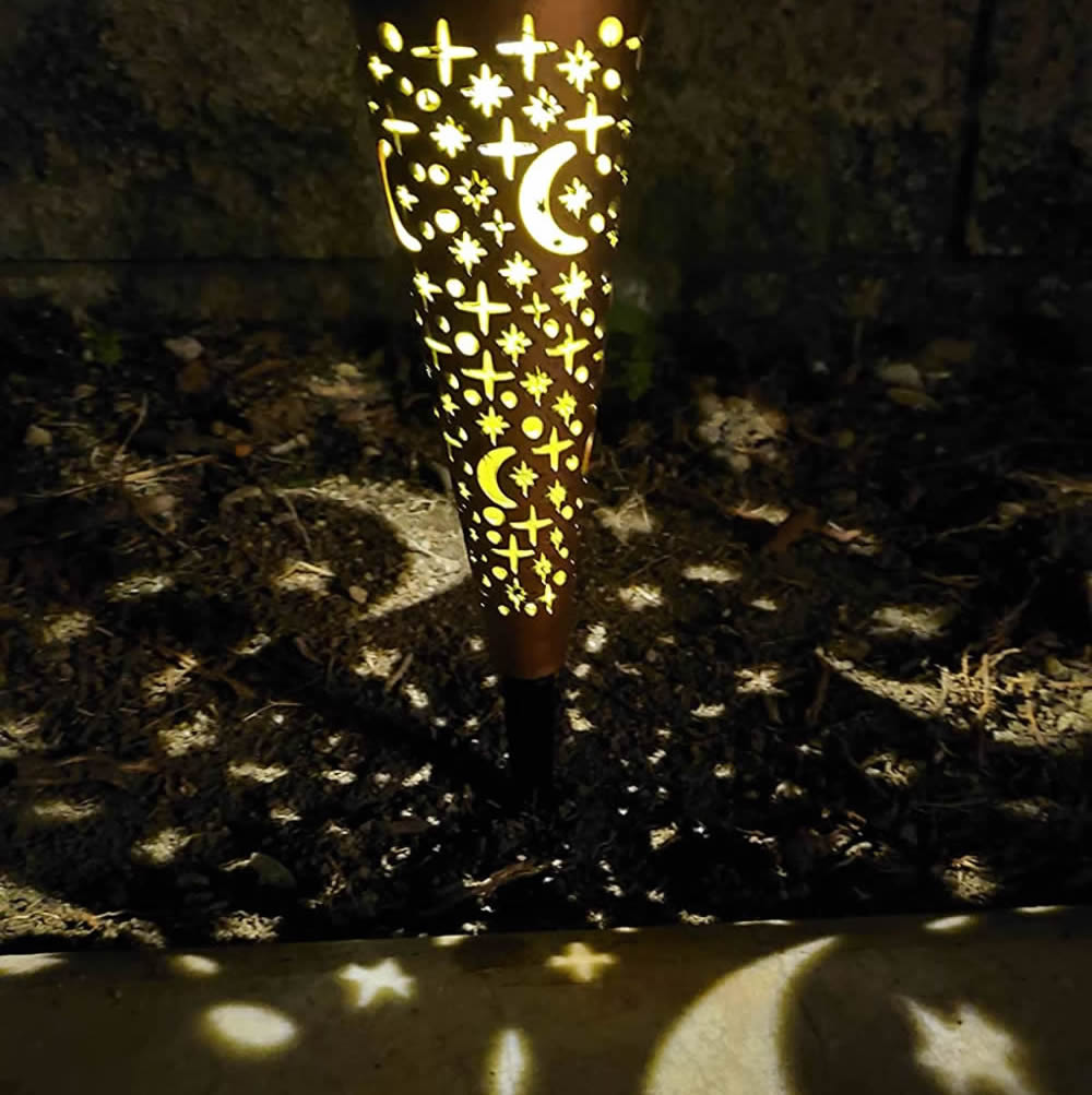 The lights are so bright n love the moon n stars design! I was a little worried as the fall weather has set in but as you can see in the pics that even then, they r so beautiful!! Took different angles so you can see how they look! Absolutely a gorgeous addition to my yard!!